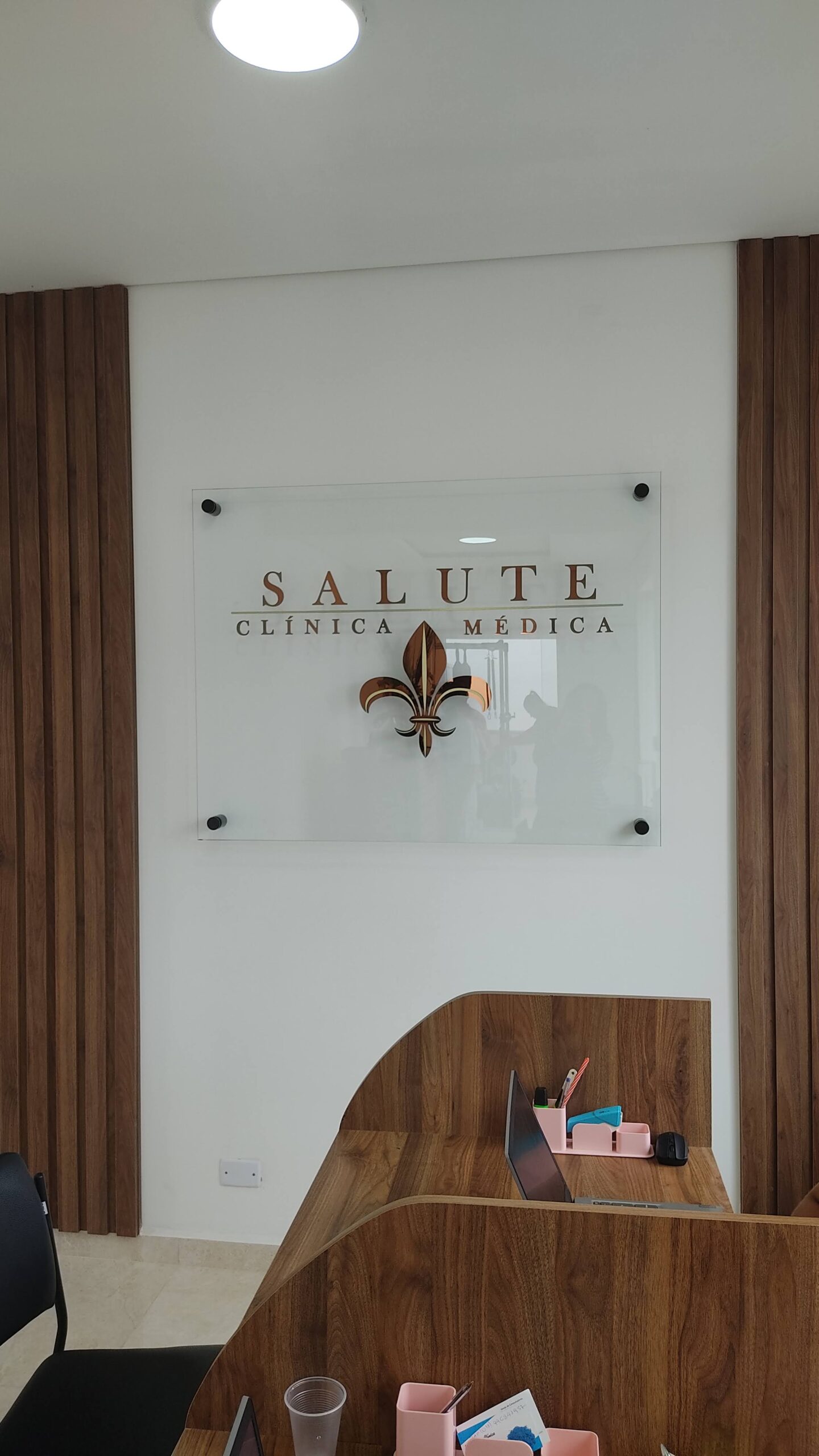 Letreiro sobre placa desenvolvido para destacar marcas de forma elegante e profissional, sem uso de iluminação. Ideal para recepções, clínicas, escritórios, lojas e ambientes corporativos, oferecendo excelente leitura visual e acabamento sofisticado.