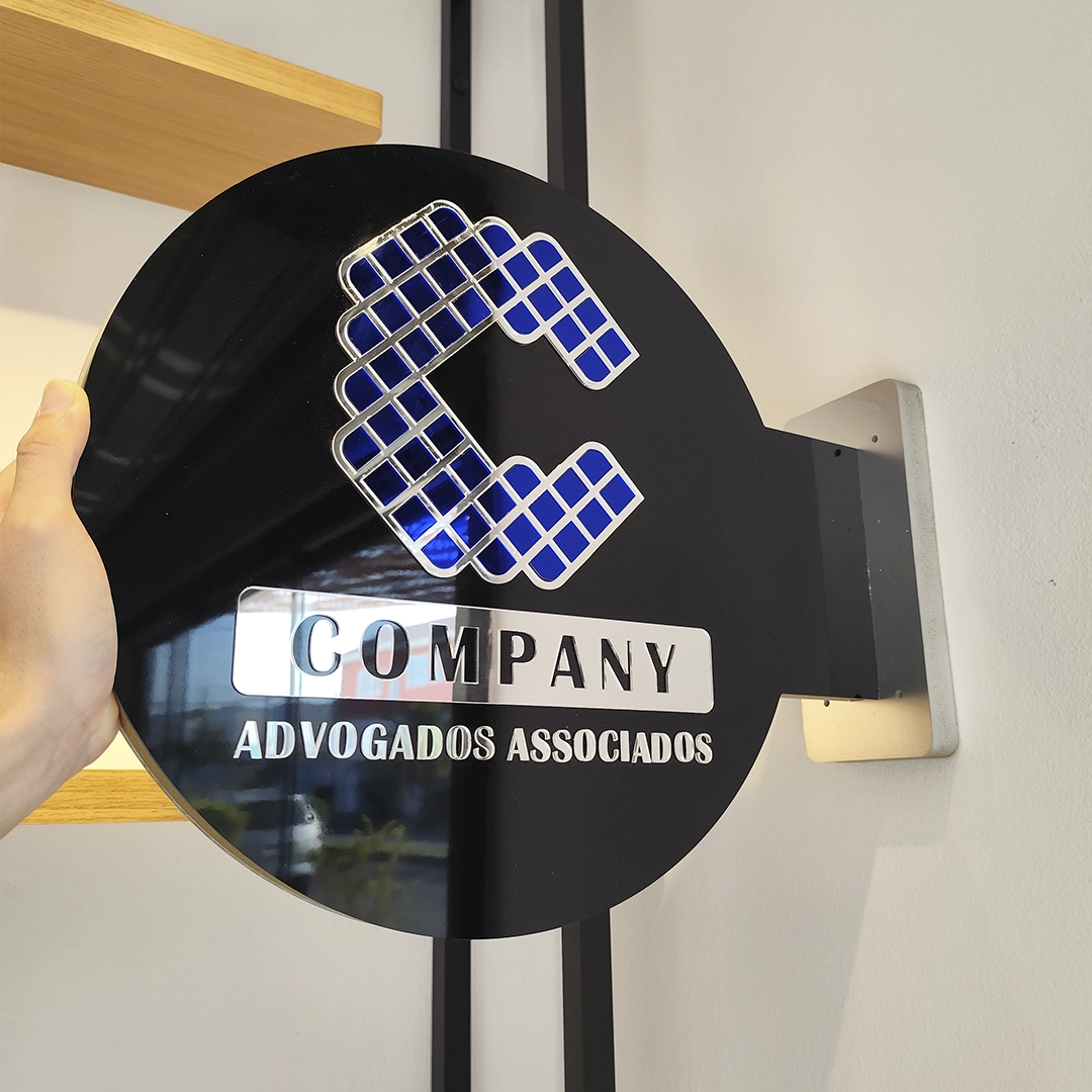 Destaque sua marca com letreiros aplicados sobre placas de acrílico ou ACM (Alumínio Composto). Ideais para recepções, fachadas, vitrines e decoração de ambientes comerciais.