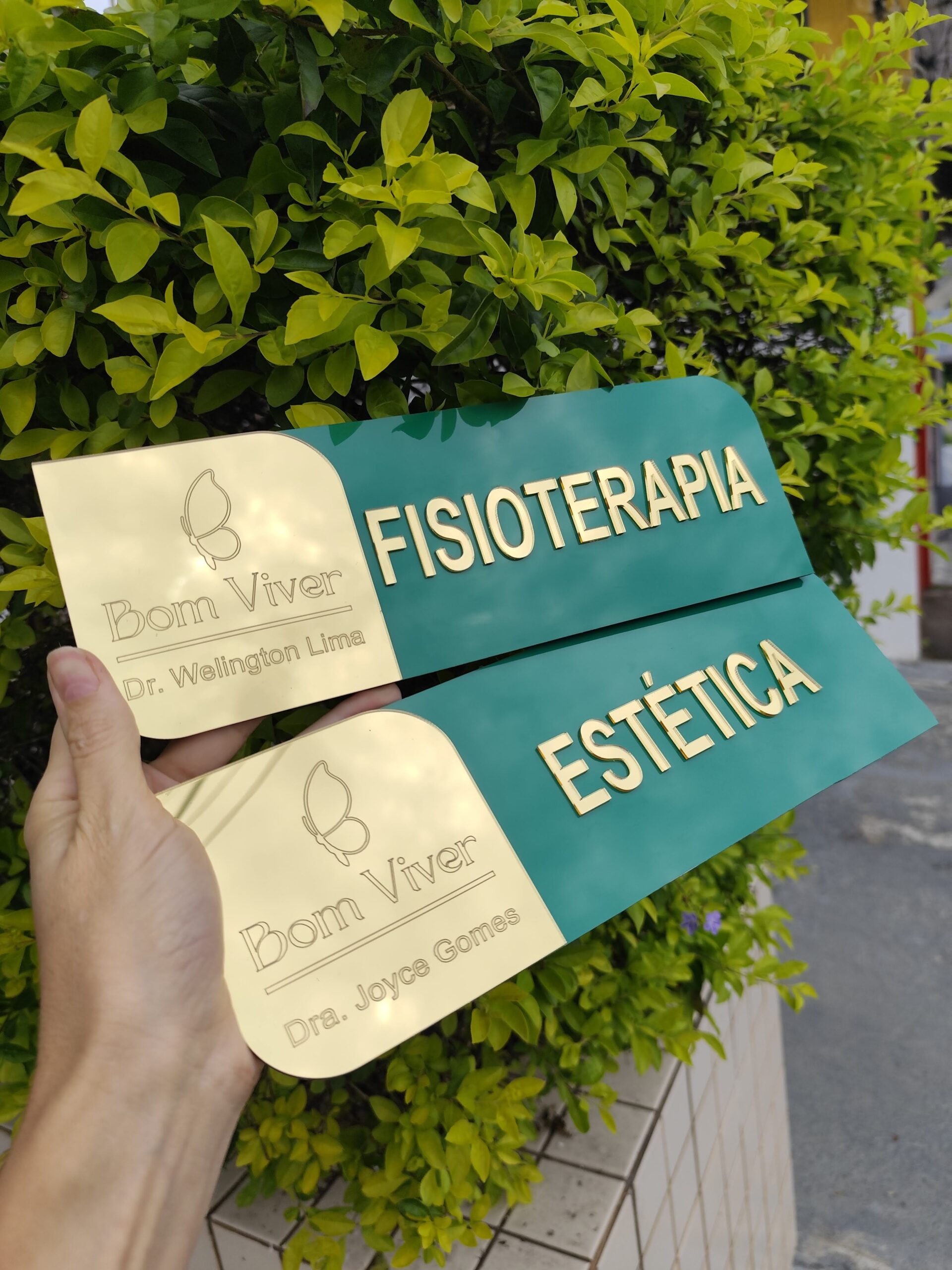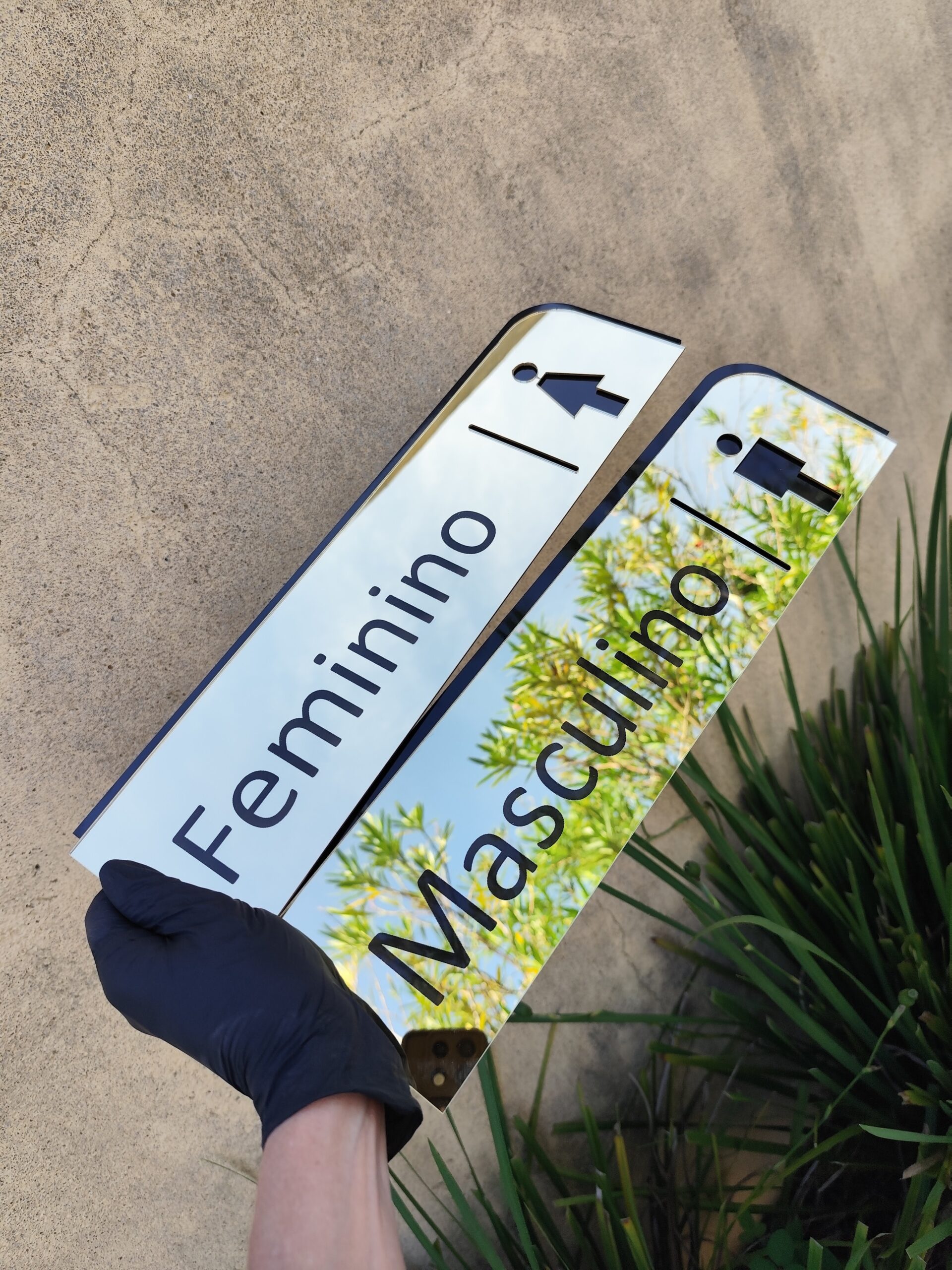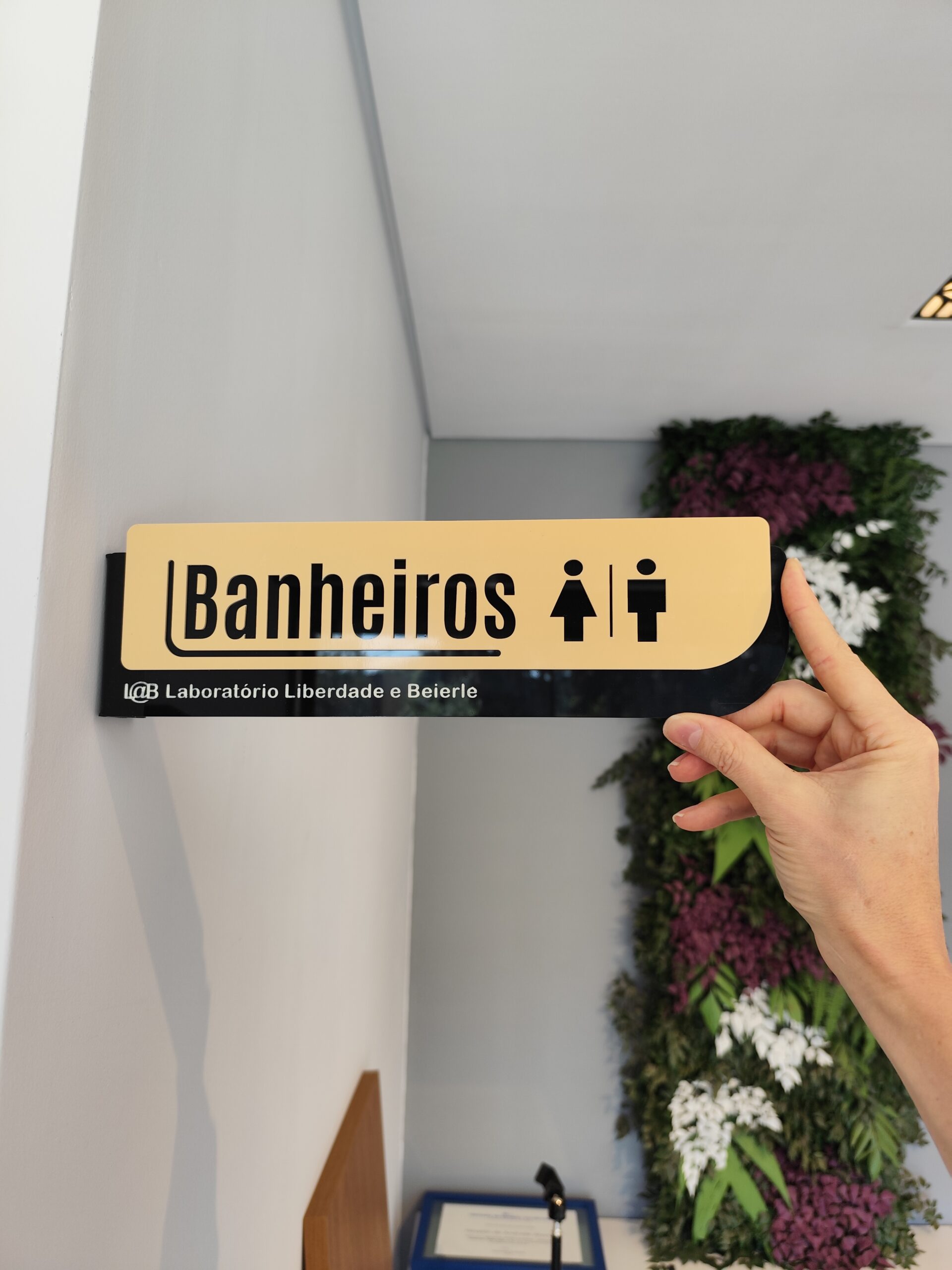 Você pode personalizar textos, cores, tamanhos, materiais e layout, garantindo alinhamento com a identidade visual do seu ambiente.